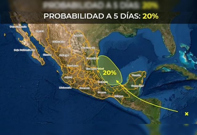 El Servicio Meteorológico Nacional (SMN) prevé la formación de una zona de baja presión en el Mar Caribe con 20% de potencial ciclónico que podría dirigirse hacía el Golfo de México y Tamaulip