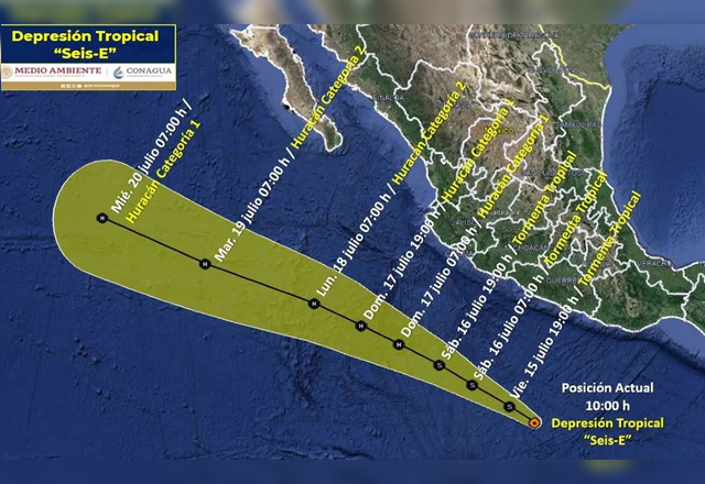 La depresión tropical Seis-E se formó al sur de las costas de Guerrero, informó el Servicio Meteorológico Nacional (SMN). El ciclón se desplaza hacia el oeste-noroeste, paralelo a las costas de M