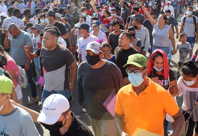 Una nueva caravana conformada por unos tres mil migrantes, en su mayoría originarios de Venezuela, Centroamérica y Haití, emprendieron este viernes su caminata desde Tapachula, estado de Chiapas, h