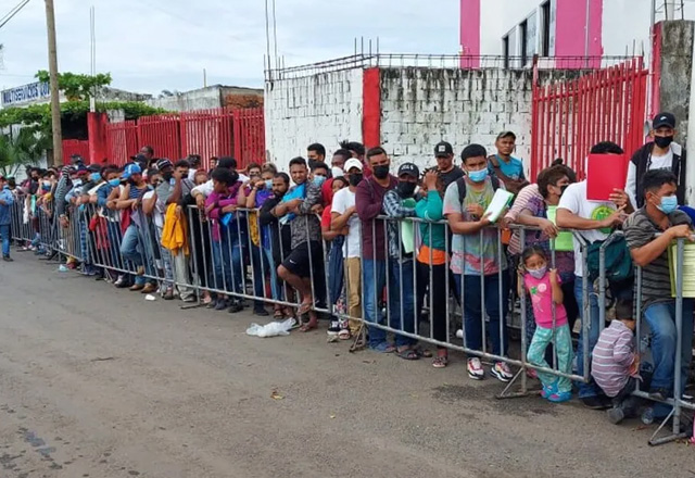 En Tapachula, Chiapas, decenas de migrantes saturaron las oficinas del Instituto Nacional de Migración (INM) para realizar su trámite de regularización de estancia. Unos 500 migrantes de diversas n