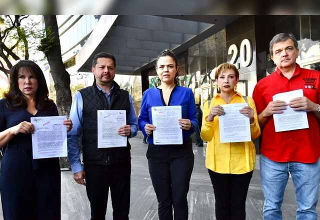 Legisladores y representantes de la coalición Va por México presentaron una denuncia penal en contra de la dirigencia de Morena, encabezada por Mario Delgado y Citlalli Hernández, así como en cont