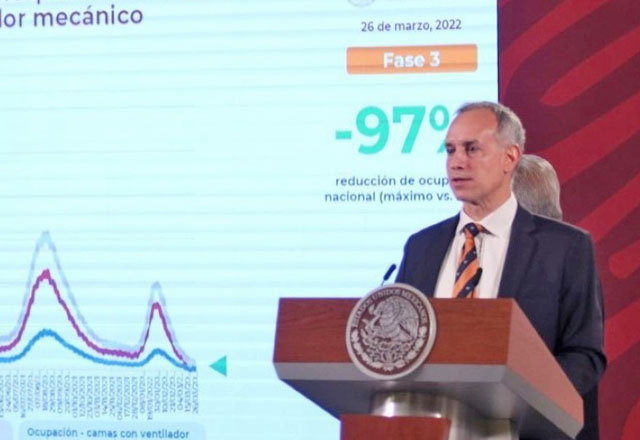 El subsecretario de Salud, Hugo López-Gatell, informó que en los últimos tres meses disminuyeron hasta 10 veces los casos, las hospitalizaciones y muertes por coronavirus covid-19 en México, al te