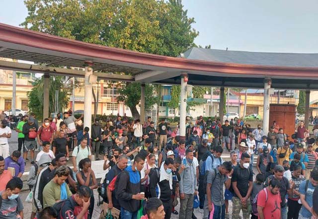 Un grupo de 500 migrantes partió en caravana a las 06:40 horas desde Tapachula, Chiapas. El contingente empezó su recorrido en el parque bicentenario. Los migrantes comenzaron su caminata por la car