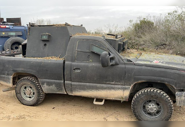 Gopes asegura armamento, equipo táctico y camionetas, una con blindaje artesanal en Camargo, Tamaulipas