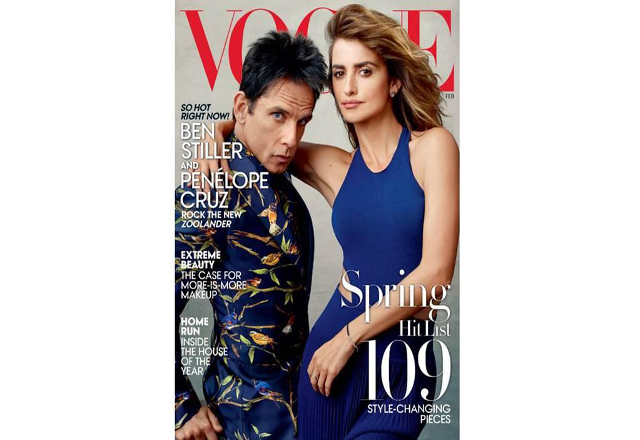 15/01/16.-Derek Zoolander, el modelo masculino más famoso del mundo... en la ficción del cine, tomó junto a Penélope Cruz la portada de la revista Vogue para su edición de febrero. Ben Stiller se