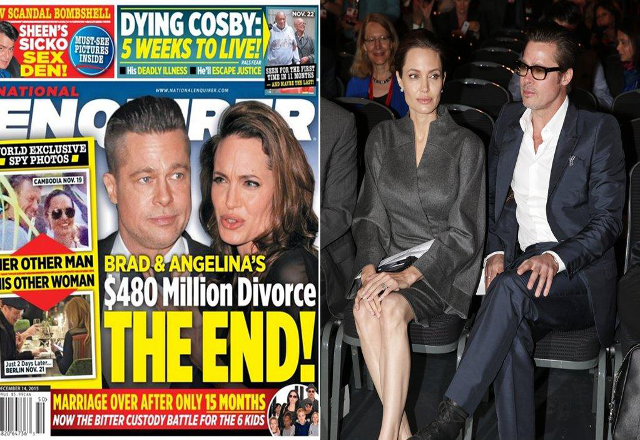 7/12/15.- En un reciente número de la revista The National Enquirer se asegura que Angelina Jolie y Brad Pitt están a punto del divorcio. Según la publicación, la pareja enfrentará una batalla â€