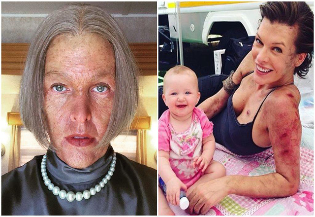 19/11/15.- Milla Jovovich, intérprete de la saga "Resident Evil", luce un nuevo look en Instagram. La actriz publicó una imagen en la red social con el rostro envejecido generando la intriga de todo