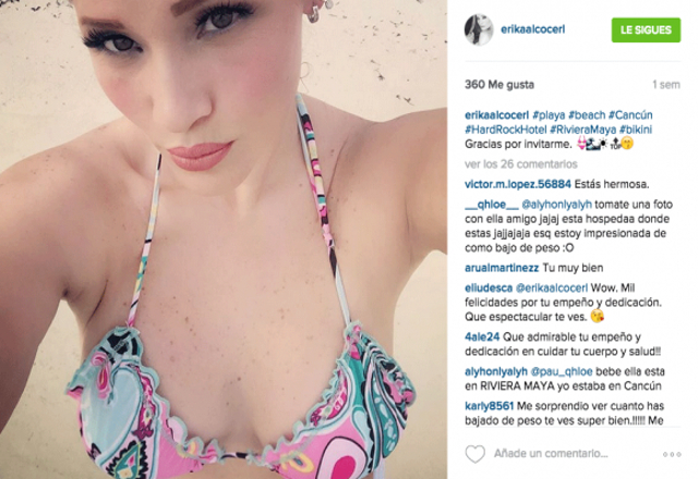 14/10/15.- La cantante Erika Alcocer sigue maravillando a sus seguidores en las redes sociales tras haber adelgazado notablemente. Esta vez, la egresada de La academia de TV Azteca sorprendió a sus f