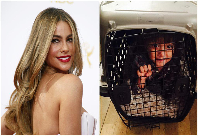 14/10/15.- La actriz Sofía Vergara causó revuelo en las redes sociales, luego de publicar una imagen en la que aparecía un niño encerrado en una jaula para perros. La fotografía, publicada a trav