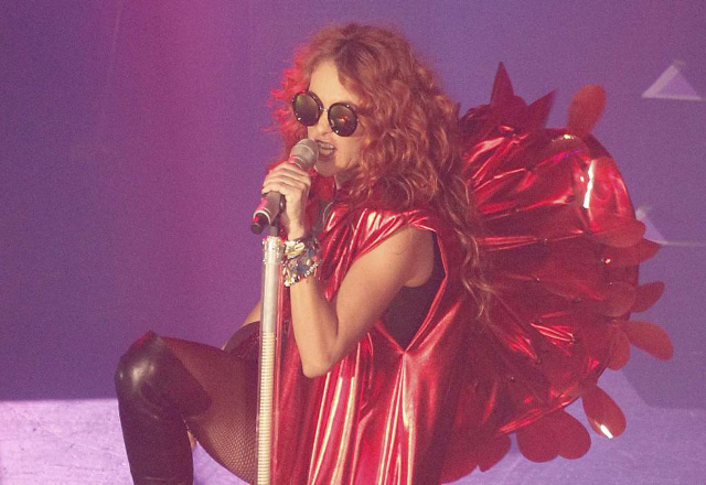 29/09/15.- Apasionada, apareció Paulina Rubio en medio del escenario. De lentes oscuros y vestida totalmente de rojo, la cantante se presentó ante sus seguidores en el Auditorio Nacional. Dejando at