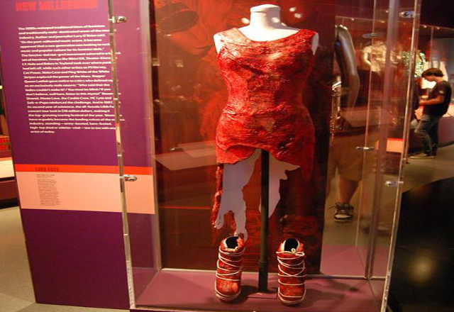 3/09/15.- El vestido de carne que usó Lady Gaga en los MTV Music Awards aún existe, ya que forma parte del museo "The Rock and Roll Hall of Fame". Fue hace cinco años cuando Lady Gaga llamó la ate