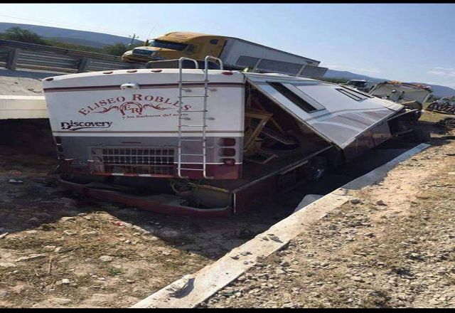 Hoy por la mañana Eliseo Robles y Los Bárbaros del Norte sufrieron un accidente en carretera en el kilómetro 75 Matehuala, donde resultaron lesionados dos músicos, el conductor del camión del gru
