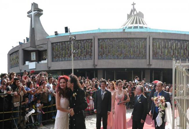 25/07/15.- Fieles a sus raíces guadalupanas y sobre todo a su amor, Alex y Chela Lora tuvieron una ceremonia religiosa llena de compromiso y toques de rock, en la renovación de sus votos en una Boda