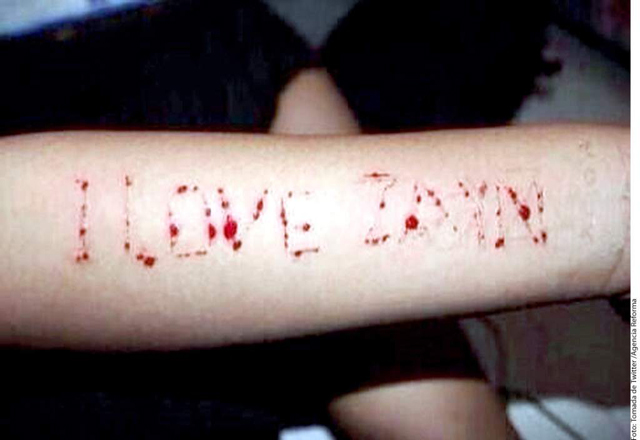 Agencia/E Bravo 27/03/15.-La salida de Zayn Malik de One Direction ha conmocionado a varias de sus fans al grado de que éstas han lastimado sus cuerpos. Con la etiqueta #CutforZayn, las seguidoras de