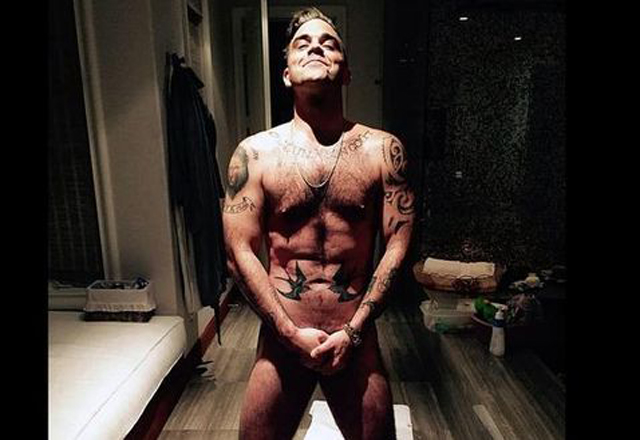 Agencia/El Bravo(14/02/15.- Robbie Williams festeja 41 años de vida y para celebrarlo decidió desnudarse. El cantante se tomó una fotografía en la que, totalmente desnudo, cubre sus genitales con