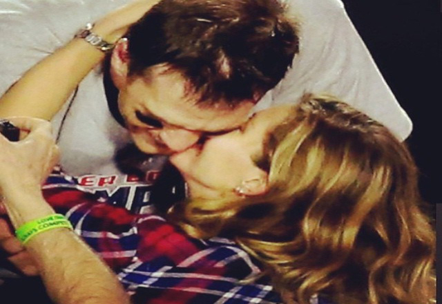 2/02/15.- La modelo Gisele Bündchen le plantó tremendo beso a su esposo, el quaterback del los New England Patriots Tom Brady, después de que este conseguiera el domingo su cuarto título de campe