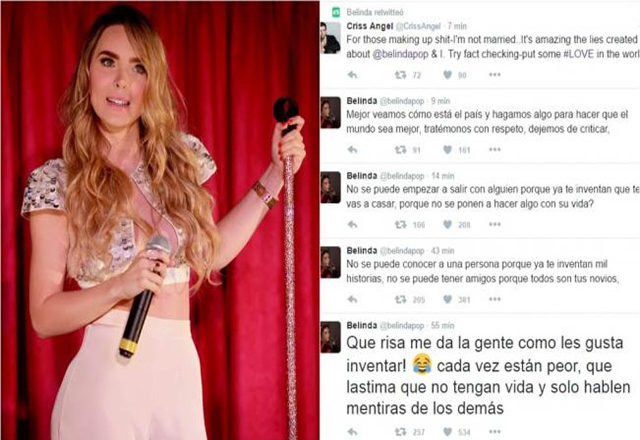 17/11/16.-La cantante Belinda empleó su cuenta en Twitter para defenderse luego de ser tendencia en la red social con el hashtag #BelindaLadyRobamaridos. Un periódico aseguró que Criss Angel, el ma