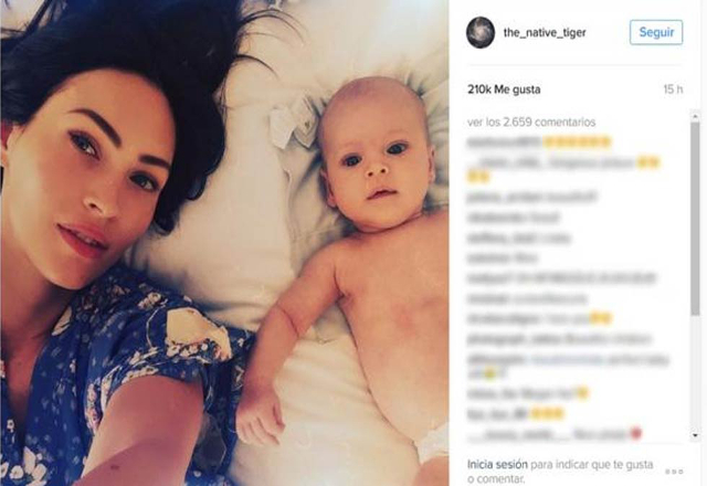 27/10/16.-La actriz Megan Fox regresó a las redes sociales con una esperada fotografía. La modelo se tomó una selfie con su pequeño hijo, Journey River Green. El tercer hijo de Fox con con Brian A