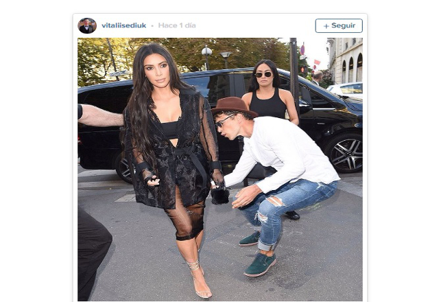 29/09/16.-Un susto fue el que recibió Kim Kardashian durante su visita a París, pues el bromista Vitalii Sediuk quedó tan impactado con su trasero que no se quedó con el antojo y le mordió la ret