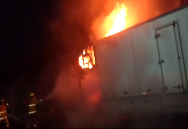 17/09/16.-Un camión de carga que transportaba el equipo de luz y sonido, presuntamente de los Tigres del Norte, se incendió en el Libramiento de Tepic a la altura de la colonia el Pedregal en Nayari