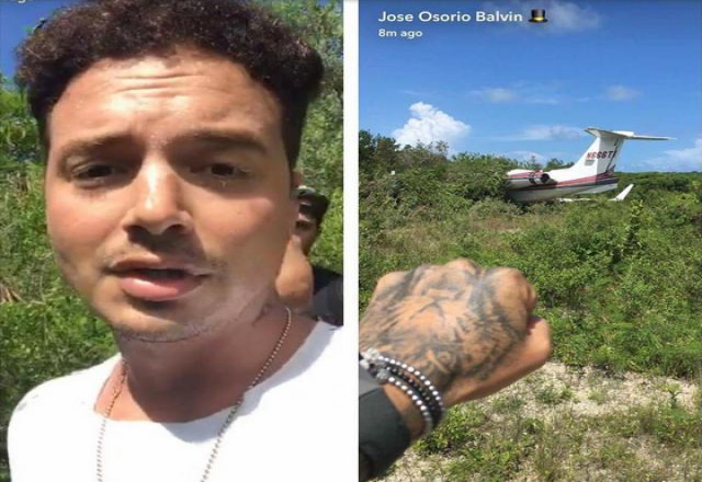 Bahamas,26/08/16.- El cantante J Balvin compartió un video donde se le puede ver muy asustado después de que el avión privado en el que viajaba con su familia se estrellara en unos matorrales tras