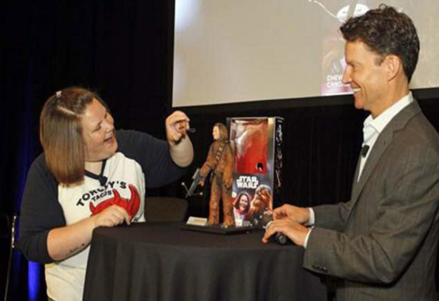 18/06/16.-Candace Payne, la mujer de la risa más viral de la que se tenga memoria, sumó otro obsequio más gracias precisamente a su carcajada y a su fanatismo por "Star Wars". La llamada Mamá Chew