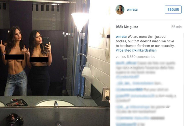 30/03/16.-Luego de la polémica que Kim Kardashian desató por publicar una fotografía desnuda en Instagram, que le ganó críticas y bromas, la estrella de “realities” posó “topless” junto