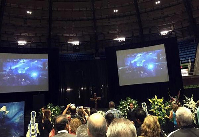 San Antonio,Tx,23/05/16.- Desde temprana horas cientos de fanáticos se congregaron frente al Freeman Coliseum para darle el último adiós a su "Rey del Rodeo". Con el corazón afligido familiares, a