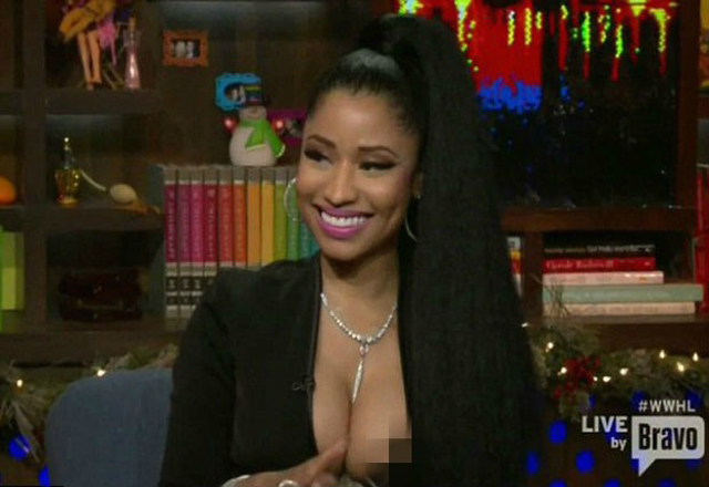 Nicki Minaj y su escote vuelven a ser noticia, ya que la cantante sufrió un accidente de vestuario en un programa de televisión, dejando al descubierto uno de sus pezones. Mientras hacía su