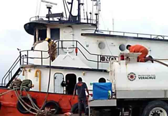 Veracruz.- Un barco tipo remolcador atracado en el muelle del puerto de Alvarado, en Veracruz, se incendió, aparentemente por un corto circuito. La embarcación se encuentra en el área del muelle