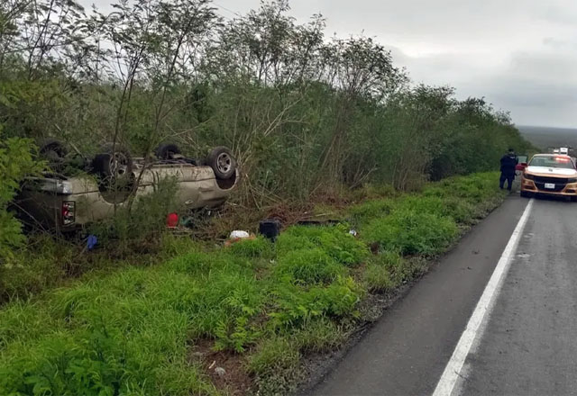 Familia extranjera vuelca en carretera de Tamaulipas; niños tuvieron lesiones