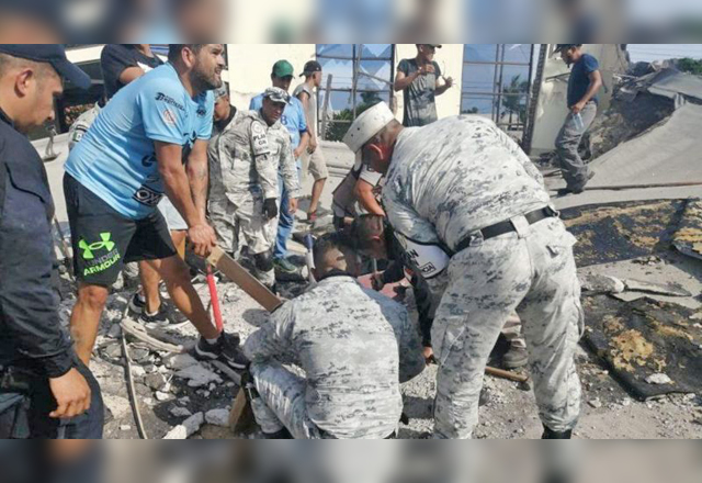 Ciudad Madero, Tamaulipas.- En la Iglesia de la Santa Cruz de Ciudad Madero donde perdieron la vida 10 personas, cuando estaban en una misa, no hay descanso: Toneladas de escombro son sacadas con maqu