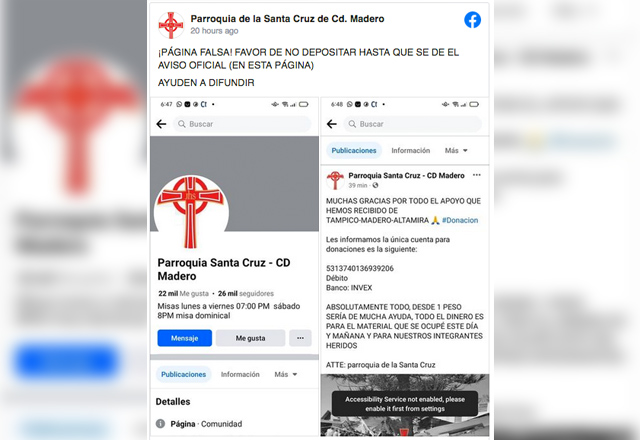 Los estafadores están haciendo de las suyas, aprovechándose de la lamentable tragedia que ocurrió este domingo en una iglesia de Ciudad Madero al pedir donaciones de dinero mediante redes sociales.