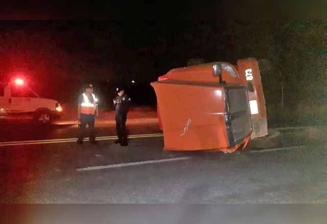 Por volcadura de un tractocamión cargado de productos de un supermercado, la circulación de la carretera Victoria-Monterrey se encuentra cerrada La Secretaria de Seguridad Pública de Tamaulipas inf