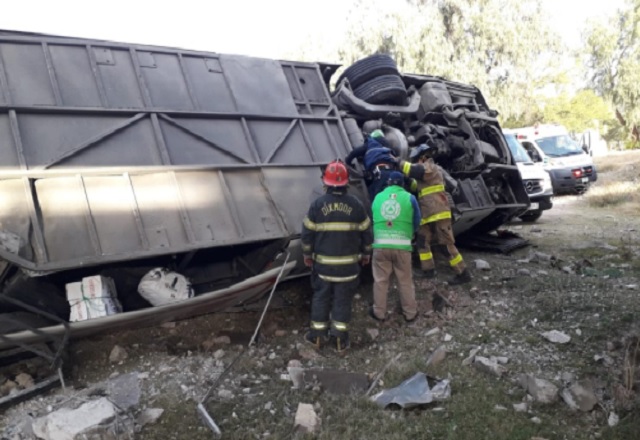 Un autobús de pasajeros que iba rumbo a Reynosa, procedente de Veracruz se volcó a la altura del Puente Roto, sobre la carretera Tampico-Mante, accidente que dejó 12 personas lesionadas que fueron