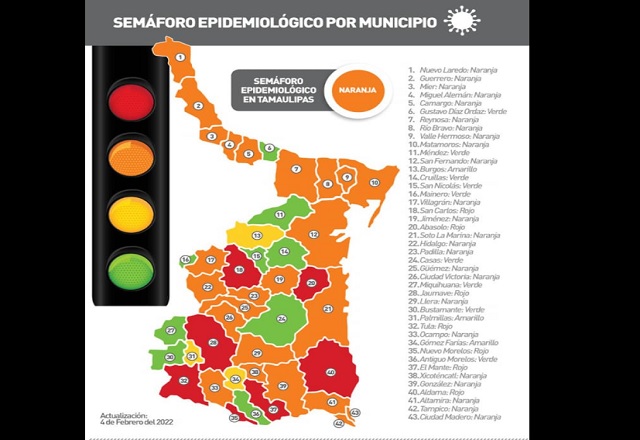 leer másFederación retrocede a Tamaulipas a color naranja en semáforo de covid-19
