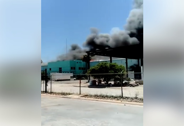 Reynosa, 28/05/18.- Se registró incendio la tarde de este lunes en la empresa COPANORO, dedicada a la manufactura de rollos de papel. La conflagración inició en el techo del edificio, donde se real