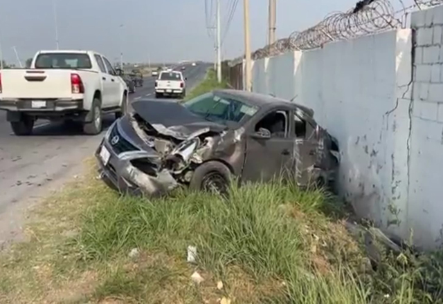 Reynosa, Tamaulipas. - Una mujer de 32 años y su pareja sentimental de 22 resultaron lesionados esta mañana al ser impactado y proyectado contra una barda el carro en el que viajaban, por el ex mari
