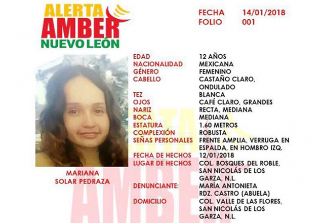 22/01/2018 - REYNOSA, TAMAULIPAS.- Mariana “N”, la menor de 12 años de edad, quien fue reportada como desaparecida desde el pasado 12 de enero en el municipio de San Nicolás de los Garza, Nuevo
