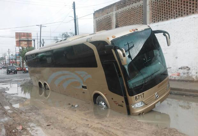 13/11/2017 - TAMAULIPAS.- La lluvia registrada la noche del domingo, dejó cubierto de agua un enorme socavón, en la colonia del Prado en Reynosa, provocando, que un autobús de pasajeros, propiedad