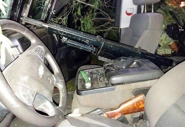 09/08/17.- Después de repeler una agresión en la Carretera Nuevo Laredo-Reynosa, personal de la Octava Zona Militar aseguró un fusil Barret calibre 50 milímetros, 4 fusiles AK-47, 2 granadas de ma