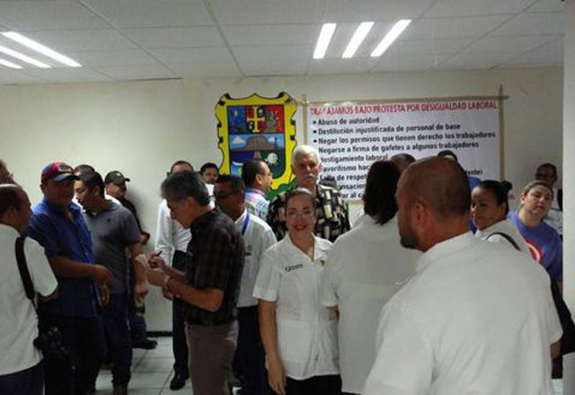 27/06/2017 - Reynosa.- Al menos unos 50 trabajadores sindicalizados del Centro de Salud se manifiestan esta mañana en las instalaciones de la cuarta jurisdicción sanitaria para pedir la sustitució