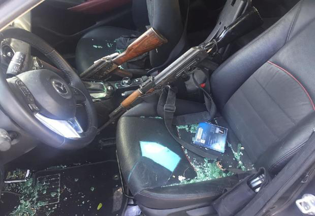 15/06/17.- Elementos de la Policía Estatal detuvieron esta mañana a dos individuos en la colonia Cumbres, en el municipio de Reynosa, a quienes aseguraron 2 fusiles AK-47, 11 cargadores abastecidos,