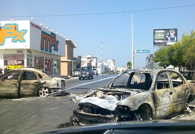 22/04/2017 - TAMAULIPAS.- Usuarios en redes sociales comparten fotos de bloqueos con autos quemados y persecuciones a balazos es lo que se vive esta madrugada en la ciudad de Reynosa, Tamaulipas fron