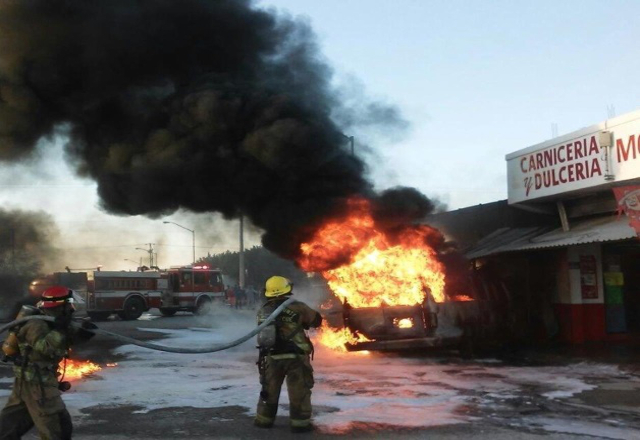 Reynosa, 26/01/17. Un hombre resultó lesionado, luego de que una camioneta que transportaba gasolina explotó al estrellarse contra una carnicería en Reynosa. Los hechos se registraron poco antes