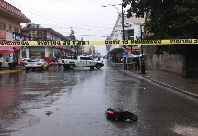 Reynosa, 8/12/16.- Un hombre quedó tirado en el pavimento al recibir impactos de bala en ambas piernas, luego de que consumó un asalto a joyería en el centro de la ciudad. El sujeto no identificado