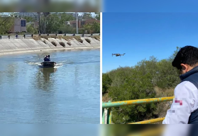 Con lanchas y drones, buscan a joven que cayó en canal de Reynosa