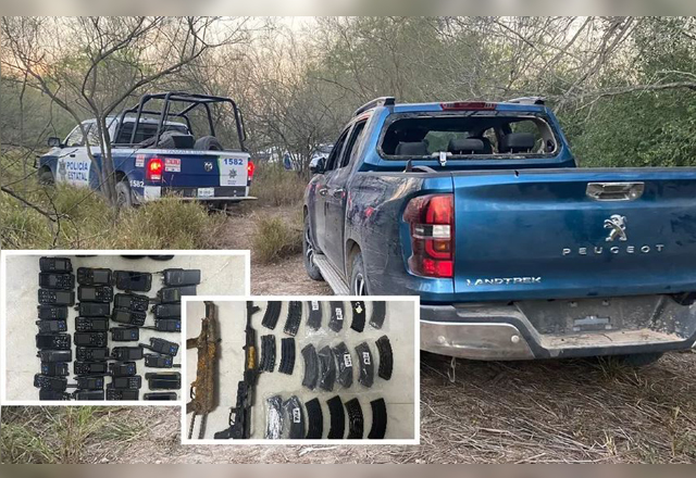 Elementos de la Policía Estatal decomisaron dos camionetas, armas, municiones y equipos de radio, tras ser agredidos en el municipio de Reynosa, sin embargo no lograron detener a los delincuentes que
