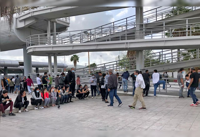 La explanada de la delegación del Instituto Nacional de Migración (INM) en Reynosa comienza a llenarse nuevamente de migrantes, en esta ocasión, son grupos de cubanos y algunos pocos nicaragüenses