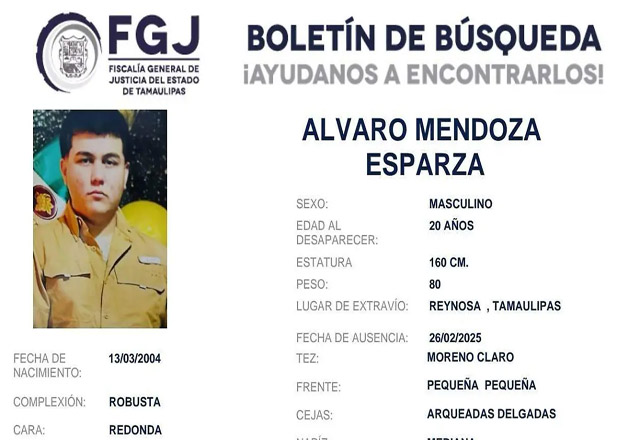 Con elementos policiacos y perros adiestrados se realizó una acción de búsqueda para localizar a Álvaro, un joven estadounidense que desapareció en la ciudad de Reynosa, Tamaulipas. Álvaro Espar